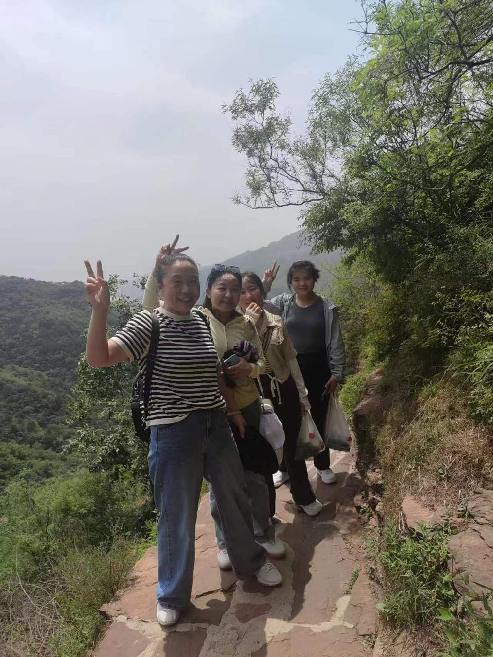 到達景區(qū)后,大家乘坐景區(qū)內小火車來到趙匡胤千里送京娘的青銅雕像前合影留念。撫摸著青銅雕像,品味著這個凄美的愛情故事,感慨萬千。隨后,大家乘上游船,欣賞京娘湖碧波蕩漾的旖旎風光,感受著一線天峰林絕壁的壯美風景。到達碼頭后,大家拾級而上開始登山。隊伍分為前鋒、后營、中軍,團隊前后呼應,協(xié)調行動。上山的路雖然很陡峭曲折,有的路段甚至沒有臺階,但大家相互鼓勵,相互加油,堅持著向上攀登,向上攀登。中午,在山里人家簡單用餐后小憩一會兒,午后繼續(xù)向山頂發(fā)起沖鋒。每當大家疲憊至極時,就停下來休息一下,吹著清爽怡人的山風,回眸走過的山路,又是一番別樣的風景,一身的疲憊和勞累一掃而光。短暫休息后,大家繼續(xù)向上攀登,有的員工走不動了,落在了后面,大家就扶一把,拉一把,幫助他們跟上隊伍。在大家的共同努力下,終于成功登上了宋祖峰的頂峰,整個團隊沒有一個人掉隊。特別是車間女工表現(xiàn)的非常頑強,體現(xiàn)了不怕苦不怕累、積極向上的精神風貌。團隊的一些老員工,還有員工家屬,不管是老人還是孩子,都表現(xiàn)的很好,堅持到了最后,站上了峰頂。